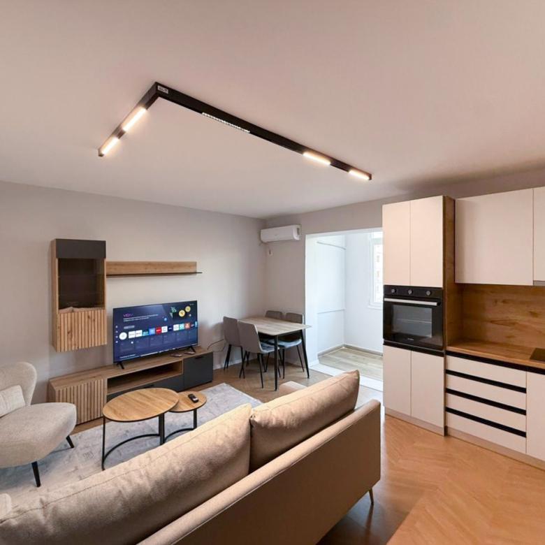 Apartament 2+1 me siperfaqe 80 m2, i pozicionuar ne katin e 4. Ofrohet pjeserisht i mobiluar dhe ne gjendje shume te mire. Ka organizim funksional dhe ambiente komode per banim...