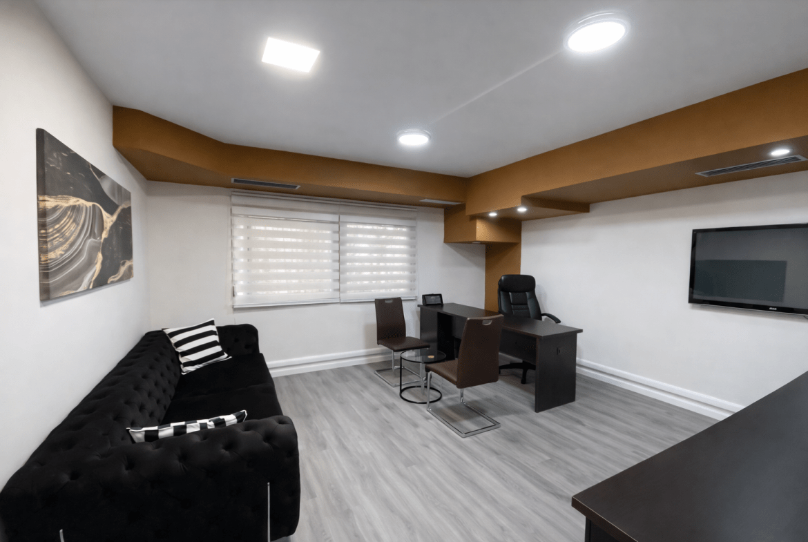 Ambienti ka sipërfaqe totale 200 m² ndodhet ne katin e 2 dhe organizohet në 4 ambiente pune. Planimetria është funksionale dhe lejon riorganizim të brendshëm sipas strukturës dhe kërkesave specifike te boznesit, duke e bërë të përshtatshëm për cdo tipologji biznesi.