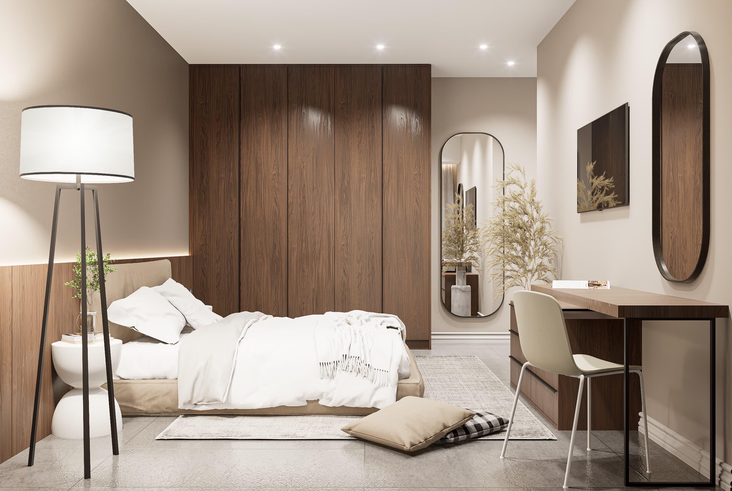 Organizohet ne një dhomë ndenje dhe kuzhinë, në dy dhoma gjumi, dy tualete dhe një ballkon me pamje nga parku i Liqenit.